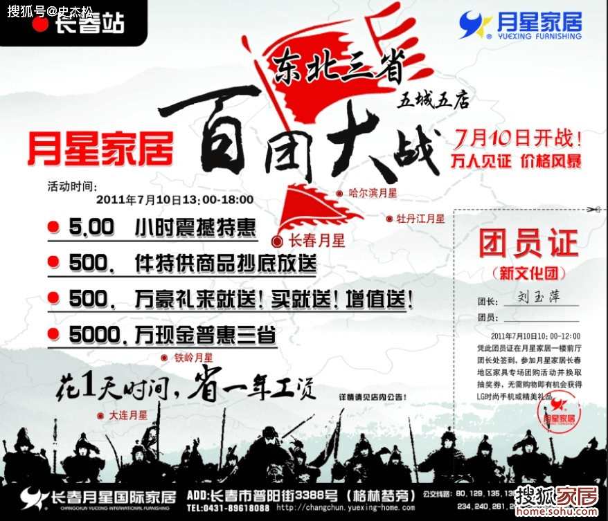 (1)【The First、获取团员证】据悉,加入本次“百团大和”的顾客必然要获得团员证。6月30日至7月9日每天9!30至17!30,月星家居一楼总办事台将免费办剃头放团员证,新文化报、东亚经贸旧事及城市晚报的读者可取间接联络领取团员证,别的正在指定的小区同样能够获得。
