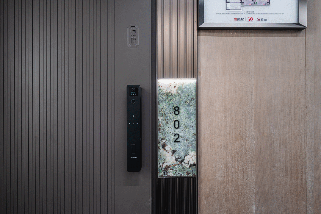 象屿交控·中环云悦府预定热线:入户的拆甲门系统,人家是钢木复合门,它就纯拆甲门,能够防枪弹。入户门有祖母绿岩板为底的门牌、有印刻的“悦府”专属字样,精美感和定制感十脚,同样很都雅。
