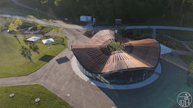 整个屋顶布局由 20 个夹杂组件构成,这些组件取 CLT 板材交替陈列,构成了奇特的海浪形轮廓。设想师将交叉层压木材(Cross-Laminated Timber, CLT)取机械人环绕纠缠的亚麻纤维元素连系正在一路, 整个制制过程犹如编织一件精彩艺术品。建建的通明立面由全高玻璃形成,供给了从内到外的全景视野,恍惚了建建取天然的鸿沟,展馆还正在地板中集成了由再生混凝土制成的地热激活系统,这一设想使得展馆可以或许正在一年四时都供给舒服的室内,同时削减了对保守建建办事的依赖。