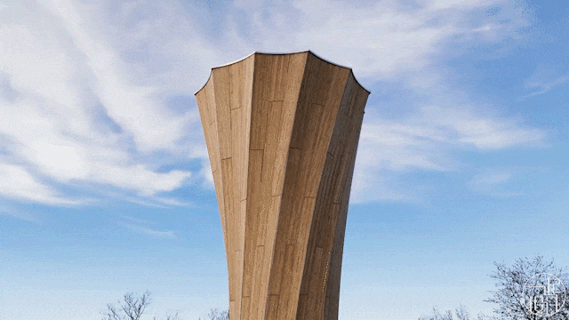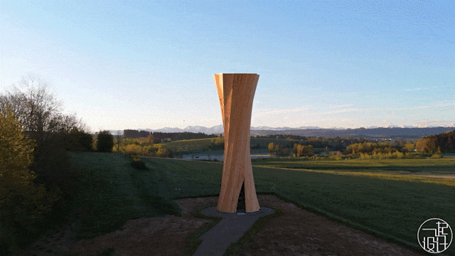 楼身的立面由十二个长布局段,以其奇特的扭曲形态组合而成,每个布局段由三个零丁的 CLT 元素构成,利用新开辟的单材料搭接接头毗连,实现了力的全标的目的传送。其奇特的螺旋状布局和 CLT 概况的曲率添加了全体的刚度,使塔楼可以或许承受程度风荷载,同时地方钢制螺旋楼梯支持着不雅景平台和旅客的分量。楼梯设想为式,没有任何遮挡或围护,这种设想不只添加了空间的感和通透性,还让参不雅者正在攀爬时可以或许间接感遭到塔内木材布局的质感和形态变化。