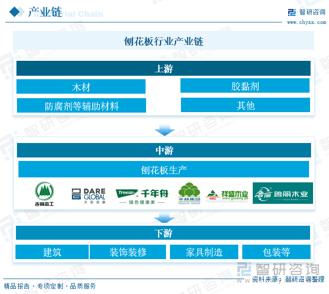刨花板行业财产链上逛次要为木材、胶黏剂以及防腐剂等辅帮材料。原材料的质量间接影响到刨花板的物能和化学机能。例如,木材的树种、含水率、杂质含量等城市影响刨花板的强度、不变性和耐候性。高质量的原材料可以或许出产出机能更不变、更耐用的刨花板。原材料的价钱波动间接影响到刨花板的出产成本。当原材料价钱上升时,刨花板的出产成本也会响应添加,从而影响企业的盈利能力和市场所作力。财产链中逛次要为刨花板的出产制制。财产链下逛次要使用于建建、粉饰拆修、家具制制以及包拆等范畴。下逛财产如家具制制、建建粉饰、包拆材料等对刨花板的需求量间接影响刨花板行业的出产规模和成长趋向。当这些行业需求兴旺时,刨花板的销量和价钱往往会上升,反之亦然。因而,财产链下逛的市场需求是刨花板行业成长的主要驱动力。