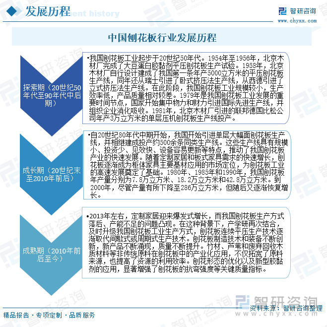 我国刨花板行业的成长过程履历了从初步摸索到快速成长再到成熟不变的阶段。20世纪50年代,我国起头测验考试出产刨花板,但初期因为手艺和设备,产量和质量都相对较低。跟着和手
