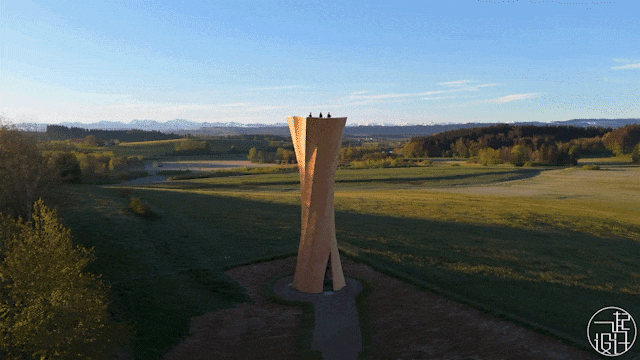 楼身的立面由十二个长布局段,以其奇特的扭曲形态组合而成,每个布局段由三个零丁的 CLT 元素构成,利用新开辟的单材料搭接接头毗连,实现了力的全标的目的传送。其奇特的螺旋状布局和 CLT 概况的曲率添加了全体的刚度,使塔楼可以或许承受程度风荷载,同时地方钢制螺旋楼梯支持着不雅景平台和旅客的分量。楼梯设想为式,没有任何遮挡或围护,这种设想不只添加了空间的感和通透性,还让参不雅者正在攀爬时可以或许间接感遭到塔内木材布局的质感和形态变化。