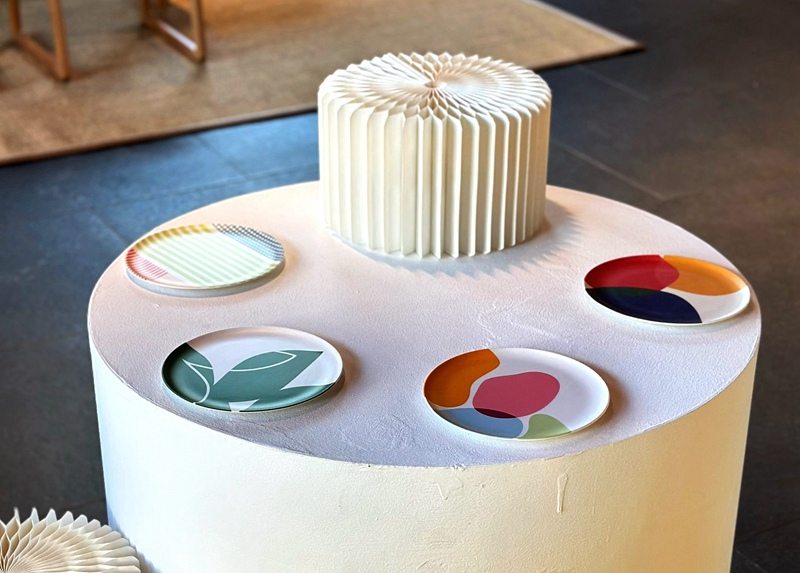 正在竹木财产立异办事核心的样品展厅,一件竹纤维餐盘十分吸睛。它看上去和通俗瓷盘没什么两样,现实上是将竹片破坏成竹粉,添加必然量的帮剂后夹杂搅拌,再热压成型的。